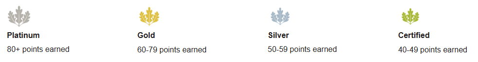 Within Quality of Life, are new requirements for climate resilience assessment, and new credits for equitable use of resources (U.S. Green Building Council 2025). Take a look at the LEED v5 scorecard for Bulding Design and Construction. Total credits earned across all categories are classified into certification levels as shown in Figure 2.7. (U.S. Green Building Council 2022).