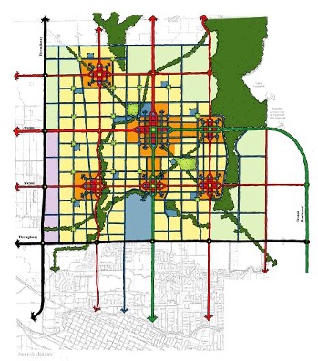 - Low destination centering: heavily sprawled communities often lack a defining central area
