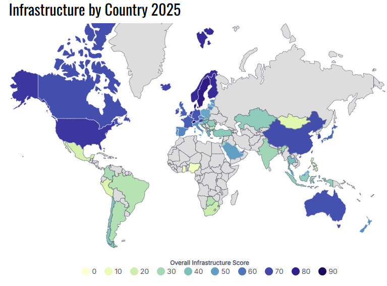 From an international (and non-lobbyist) perspective, the infrastructure in the US compares well to other countries (see Figure 1.4). The IMD World Competitiveness Ranking ranks the US 7th out of 67 evaluated countries. The rankings are based on the state of the current infrastructure and the ability of the country to meet future demands of their infrastructure (World Population Review 2025).