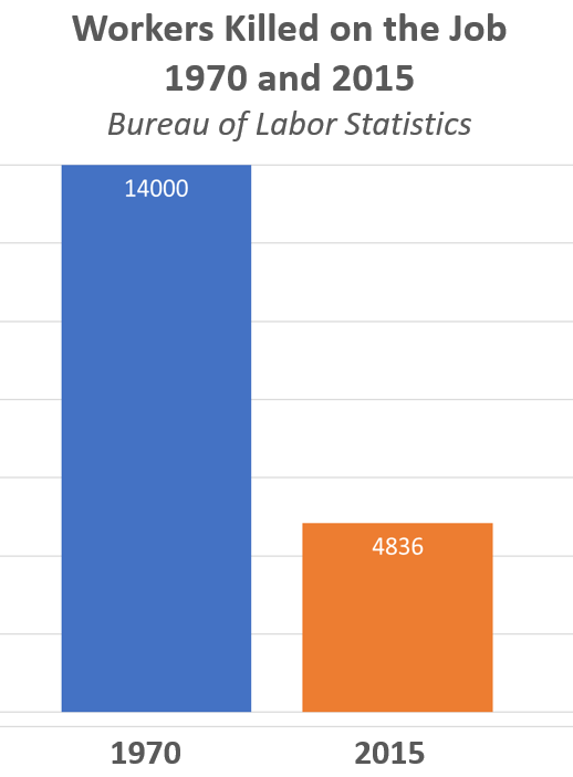 In many areas, the US has made substantial progress in making a more equitable, safer, and cleaner infrastructure. For example, Figure 1.38 shows that deaths have fallen by almost three times since 1970 when OSHA was passed and in 2015, even though the workforce nearly doubled in that time (Adams, Thompson, and Parker 2020).
